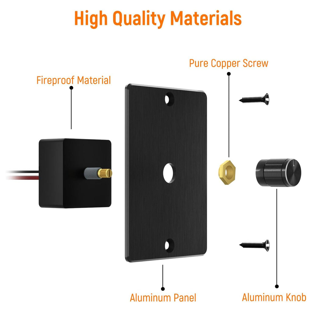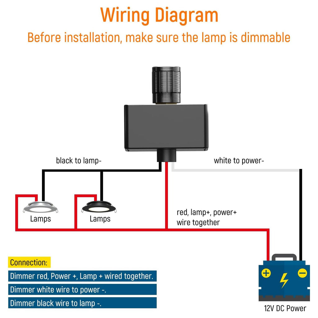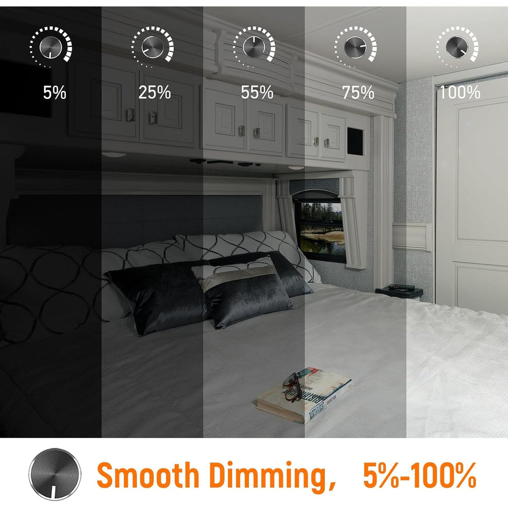 Effortlessly adjust the brightness of your lights with our 12/24 Volt LED Low Voltage Dimmer Switch. Featuring advanced PWM stepless dimming and memory function, it provides smooth and flicker-free adjustments from 5% to 100%. The full aluminum decorative faceplate adds a touch of luxury, while the separate controls for on/off and rotary dimming make it extremely convenient.