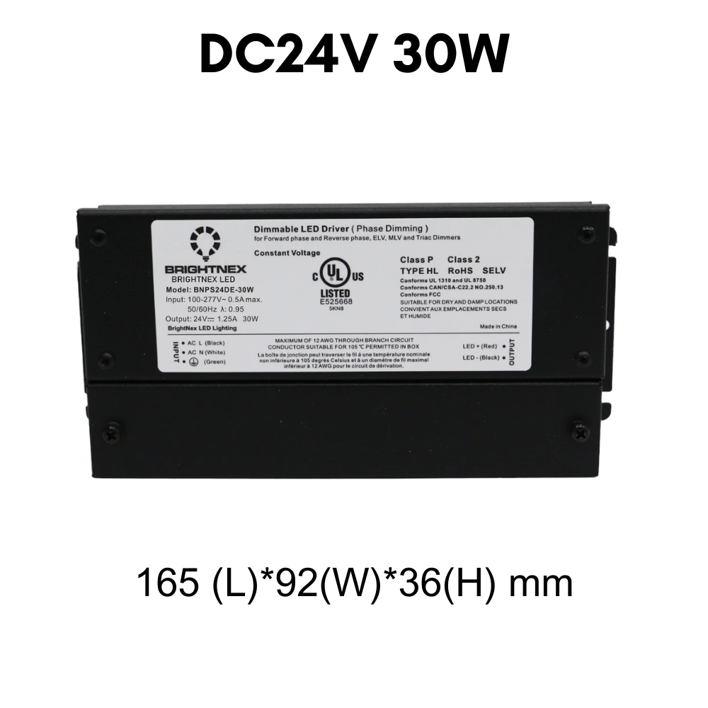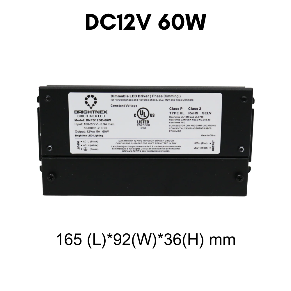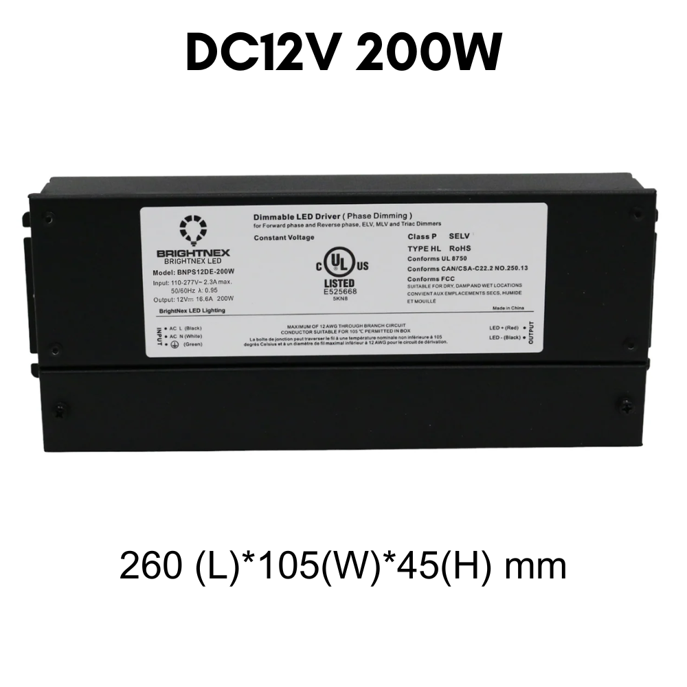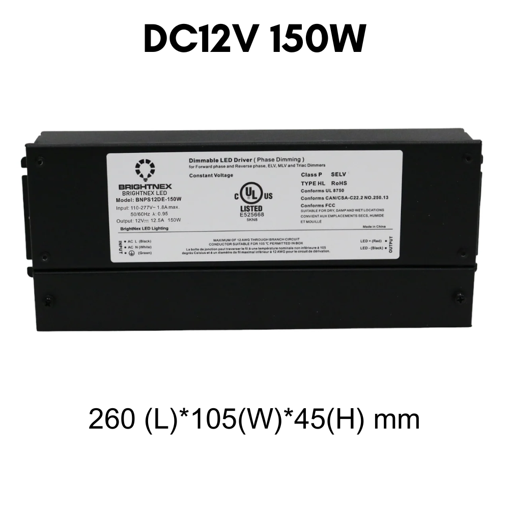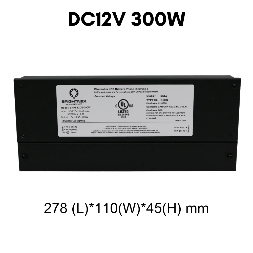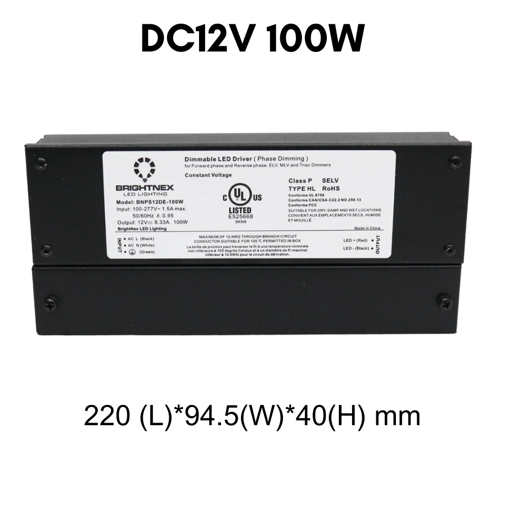 Dimmable transformer (LED Driver) is UL-certified and compatible with Triac/ ELV/ MLV dimming. Suitable for dry and damp locations. AC input 100-277VAC and 83% efficiency with short circuit protection.