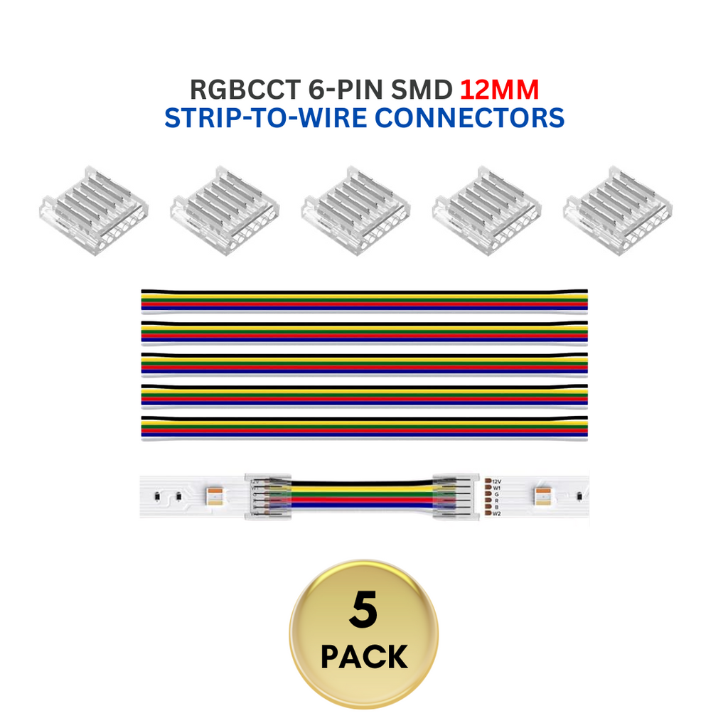 5-Pack SL 6-Pin Low-Voltage for RGBCCT SMD Dotless Strip Light Connectors 12mm