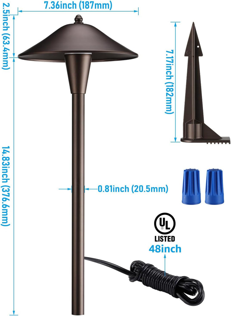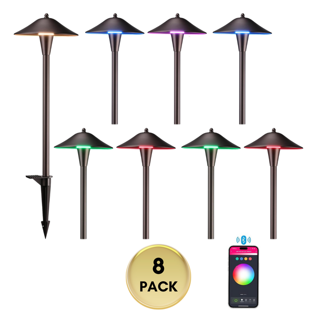 ALPR10 LED Landscape Smart Color-Changing Pathway Lights Package, Adjustable 3000K-5000K 5W 12-24V AC/DC Low Voltage Oil-Rubbed Bronze Mushroom Outdoor Landscape Lighting
