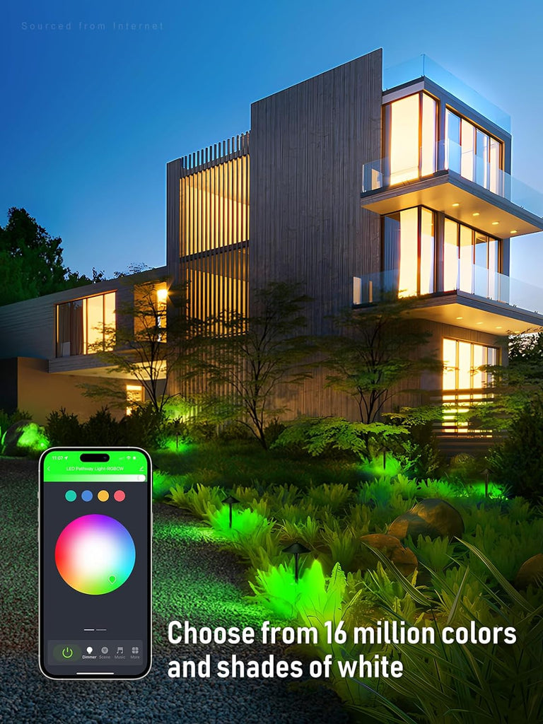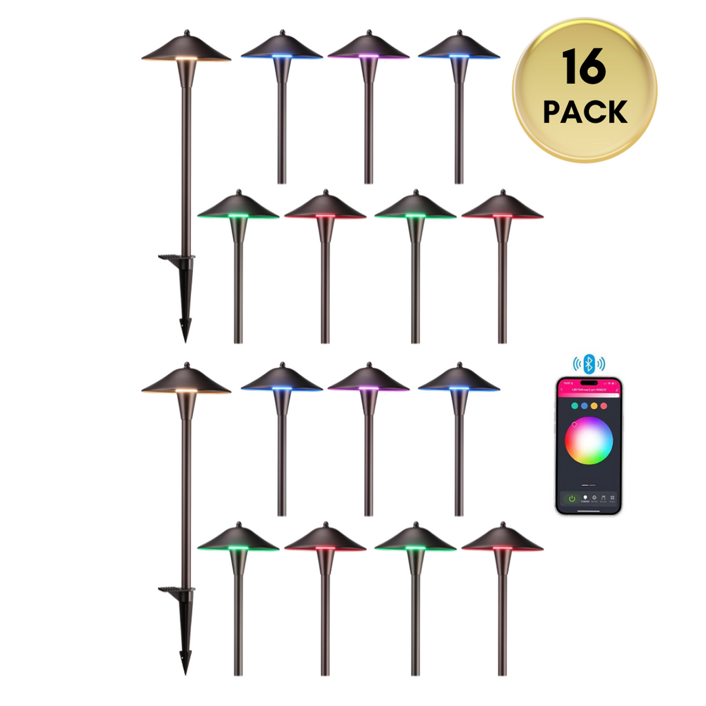 Choose from 16 million colors and adjustable white light (3000K-5000K) with these 12V path lights, perfect for illuminating pathways and gardens, and enhancing holiday decor for Halloween and Christmas.