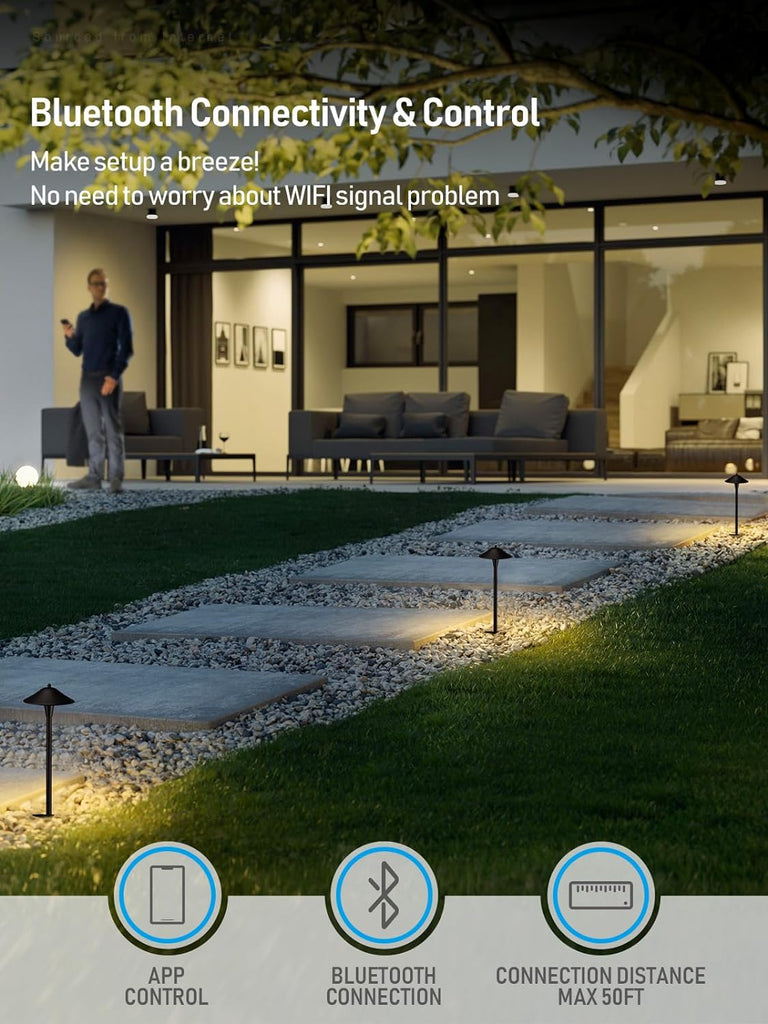 Smart Control: Take full control of your landscape path lights with the Litedge App (available on IOS and Android systems). Adjust brightness, set timers, synchronize with music, and utilize the memory function. The Bluetooth connection offers a stable connection compared to Wi-Fi.
