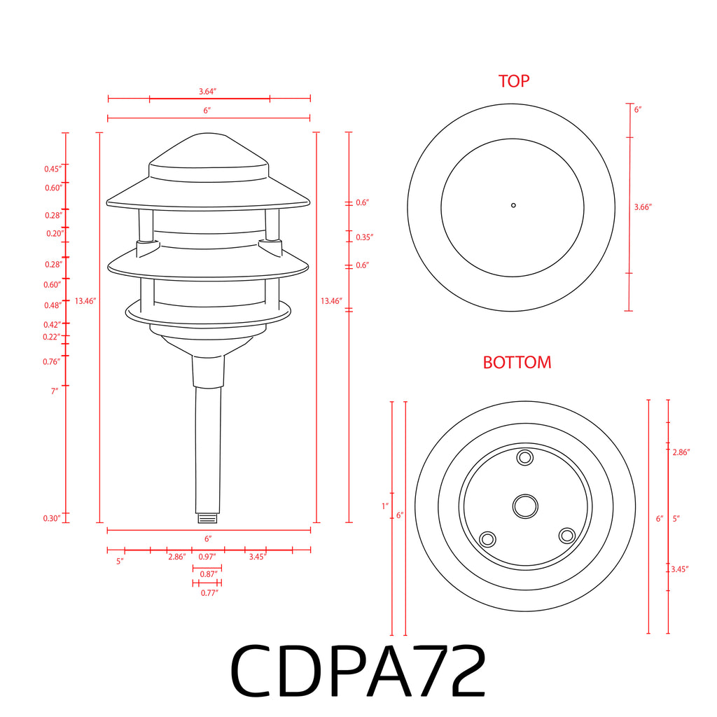CDPA72 Black/Brown 12V AC/DC Low Voltage Landscape Lighting 3 Tier Pagoda Aluminum Path Light