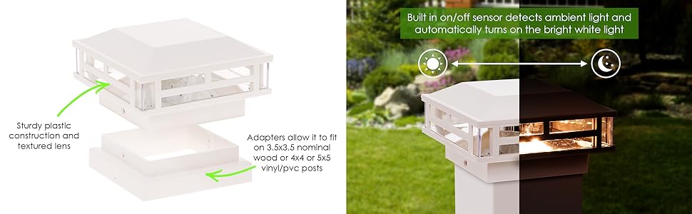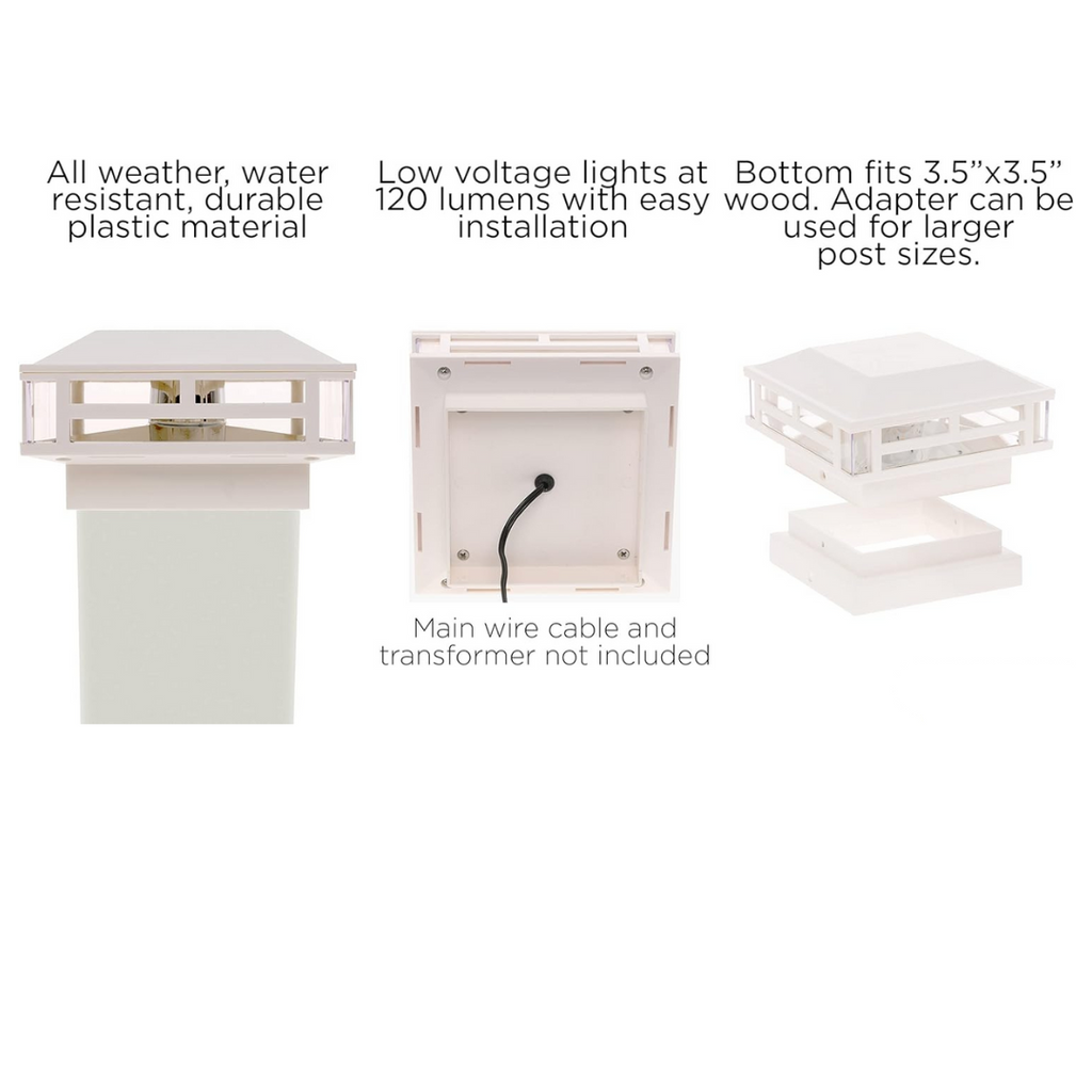 Enhance your gardens, yards, or decks with our CPL01 stylish low voltage post cap lights. Made from high-quality, durable plastic, these weather-resistant post caps are perfect for outdoor use, providing illumination in any weather—rain, snow, or shine. They can also be effectively used as driveway lights LED to enhance visibility and safety along driveways with a sleek, modern look.