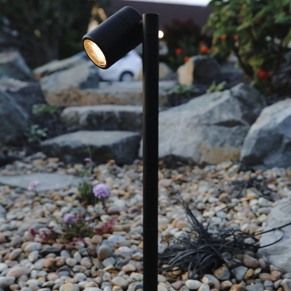 The Rondo Pathlight is built with a 13" Stem but comes with an included 12" riser that can be attached to take the fixture up to 25" tall. It features an MR16 bulb, much more powerful than the standard G4 which is used on most path lights, great for big pathways, putting greens, and other features that require more lighting. Designed for harsh environments.