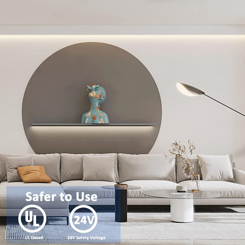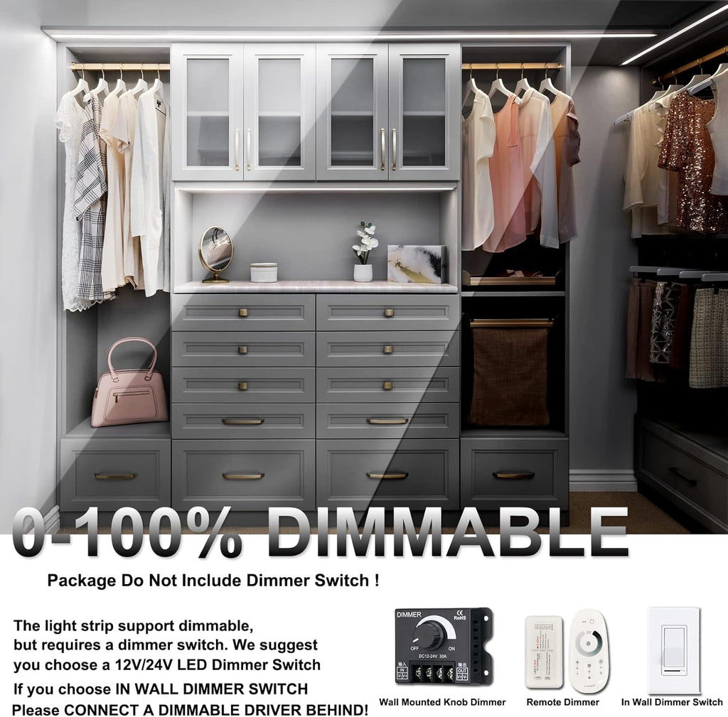 SL15 Ultra Bright Single-Color 3000K/4000K/5000K LED Dimmable Strip Light, 7.31W/ft 16.4ft SMD 2835 Strip Lights IP65 Waterproof Low Voltage 10mm DC24V Super Bright Tape Light