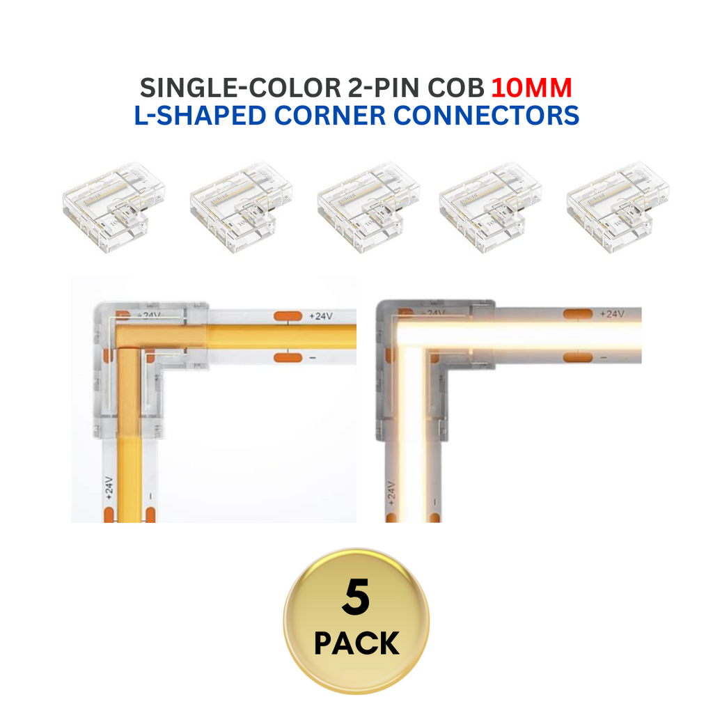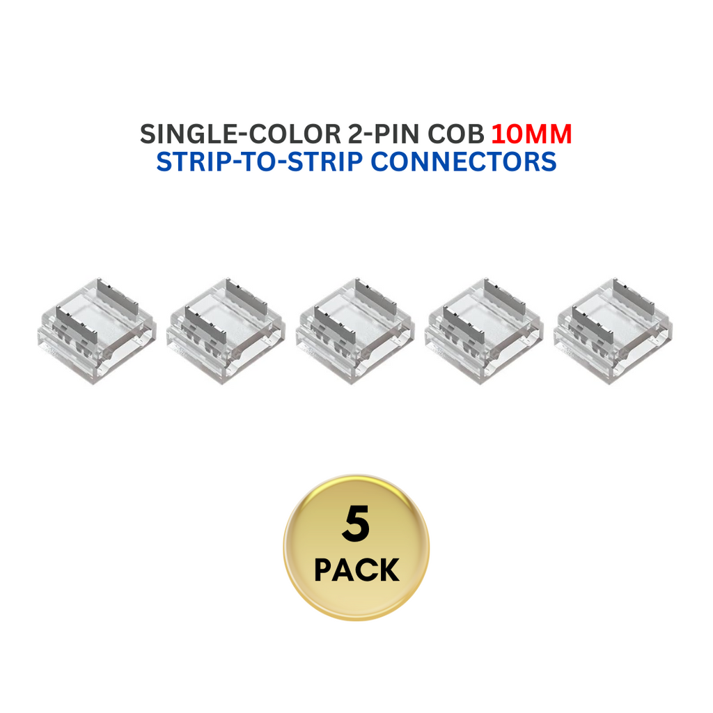 5-Pack SLD 2-Pin Low-Voltage for Single-Color COB Dotless Strip Light Connectors 5mm, 8mm and 10mm