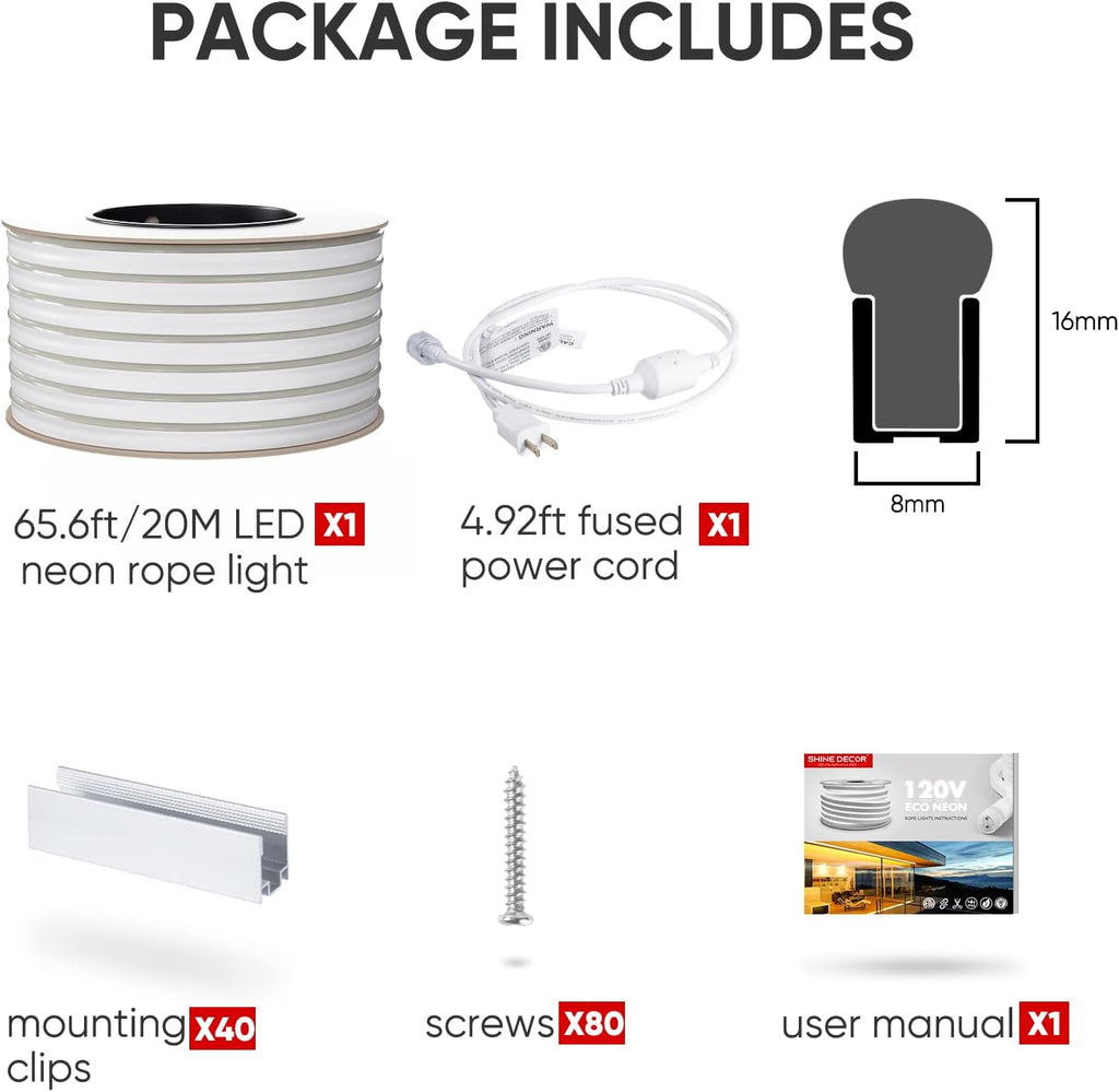 Equipped with high-quality SMD 2835 LEDs, this neon rope light delivers consistent, bright illumination with no dark spots. With 120 LEDs per meter, a 120° beam angle, and low energy consumption of just 6W/M, it’s perfect for residential and commercial lighting projects, holiday décor (Easter, Christmas, Thanksgiving, birthdays), and more. Note: Dimmer not included but compatible.