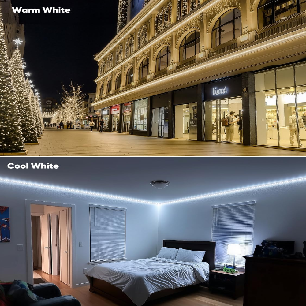 From 16.4ft (5M) up to 100ft (30M) Long Strip — Covers Large Areas: Ample length covers patios, fences, gardens, pergolas, or walkways — ideal for large outdoor decorations or big event lighting setups. Connectable up to a maximum of 132ft. 📏🏡