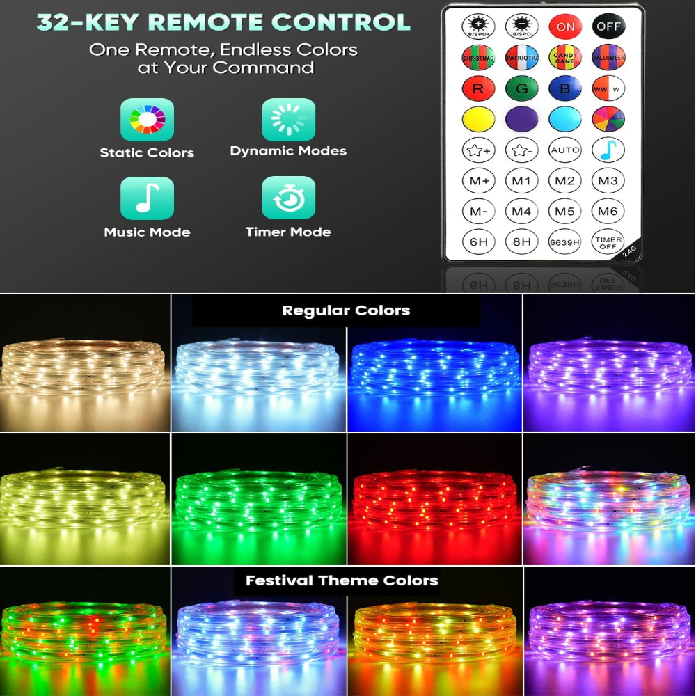 Transform your outdoor space, patio, garden, or event venue into a vibrant, captivating light show with these 16.4ft up to 100ft RGB+IC+CCT LED neon strip lights. Designed for versatility and durability, these waterproof lights deliver stunning multi-color effects as well as warm and cool white tones — perfect for holiday celebrations, garden parties, Halloween, festive décor, or everyday ambiance. With color-chasing capabilities, adjustable brightness, and weather-resistant construction, they provide a dynamic and customizable lighting solution that brings any outdoor environment to life. Whether you want warm soft glow or bold rainbow effects, this LED neon strip offers creative flexibility and easy installation for a festive yet elegant atmosphere. ✨🌿
