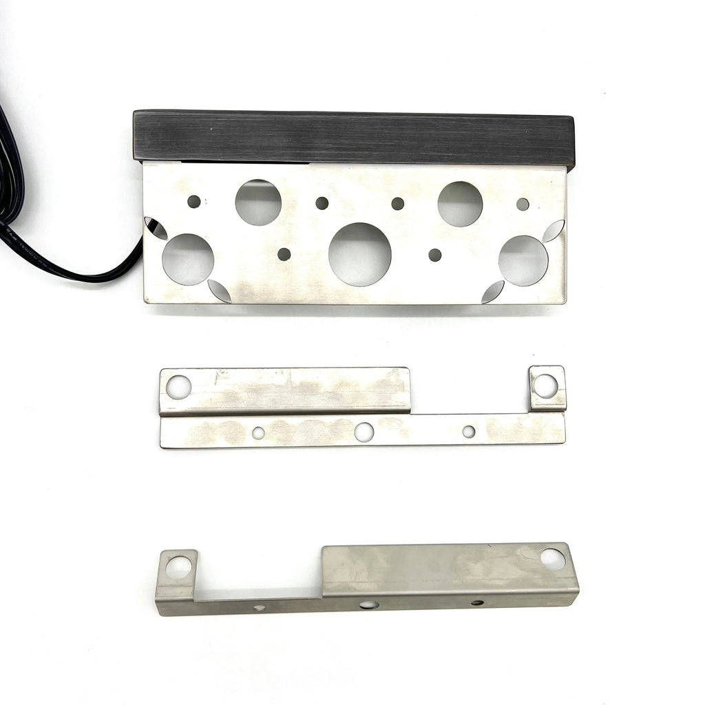 - Mounting: Large Stainless Steel Bracket, surface mount, screw underlip