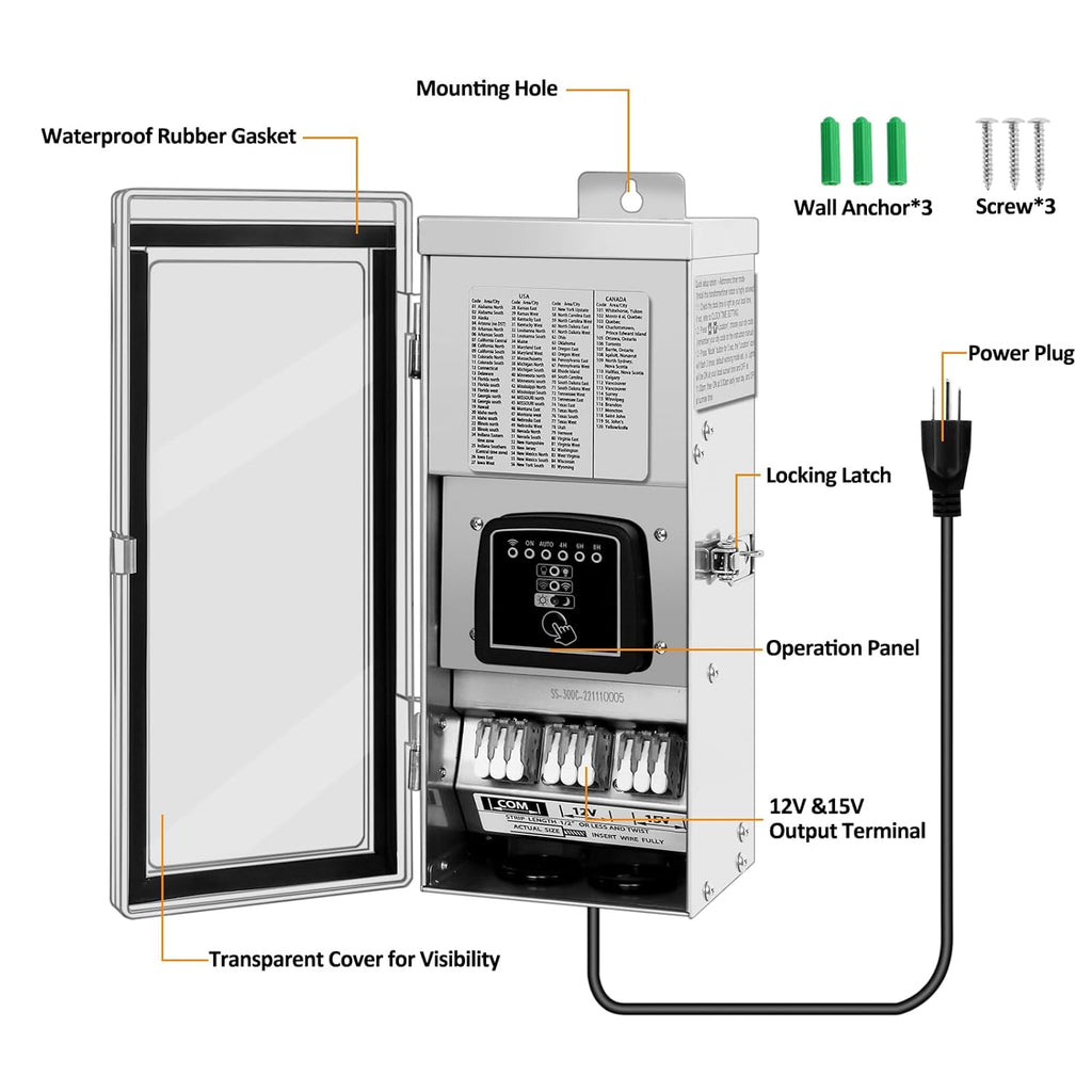 STSW300 300W Stainless Steel Smart WI-FI 12V, 15V Low Voltage Transformer with Photocell & Timer IP65