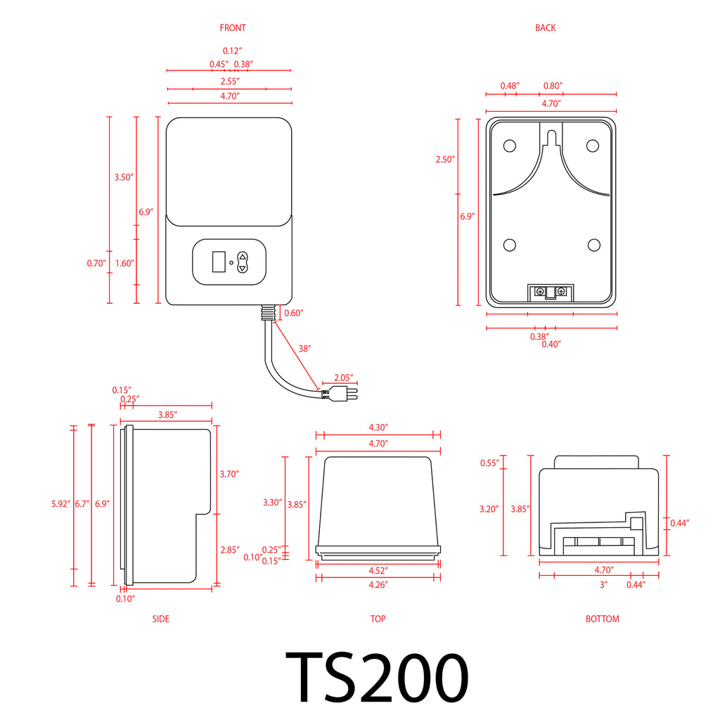 TS200 200W AC 120V Step Down Transformer with Digital Timer IP65 Waterproof.